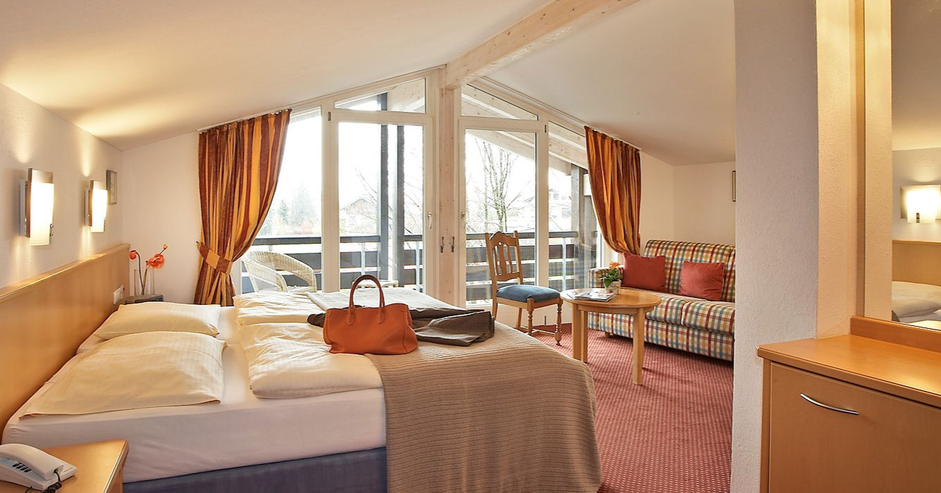 In den Familienzimmern können 2 Erwachsene und bis zu 2 Kinder (0-14,9 Jahre) schlafen. Kinderpreise altersgestaffelt. Die Zimmer verfügen entweder über ein herausziehbares Bett (1,40 x 2 m) unter dem Doppelbett oder eine Schlafcoach/Zustellbett. Auf Anfrage bieten wir Ihrer Familie aber auch gerne ein Alternativangebot mit zwei Zimmern zum besonders familienfreundlichem Preis an. Gerade als Familie ist die Oberstaufen Plus Karte besonders reizvoll. Natur-Erlebnispfade, Kinderwagen taugliche Wanderunge, Familien-Skigebiet, wir haben die Tipps. Die abgebildeten Zimmer sind Wohnbeispiele.